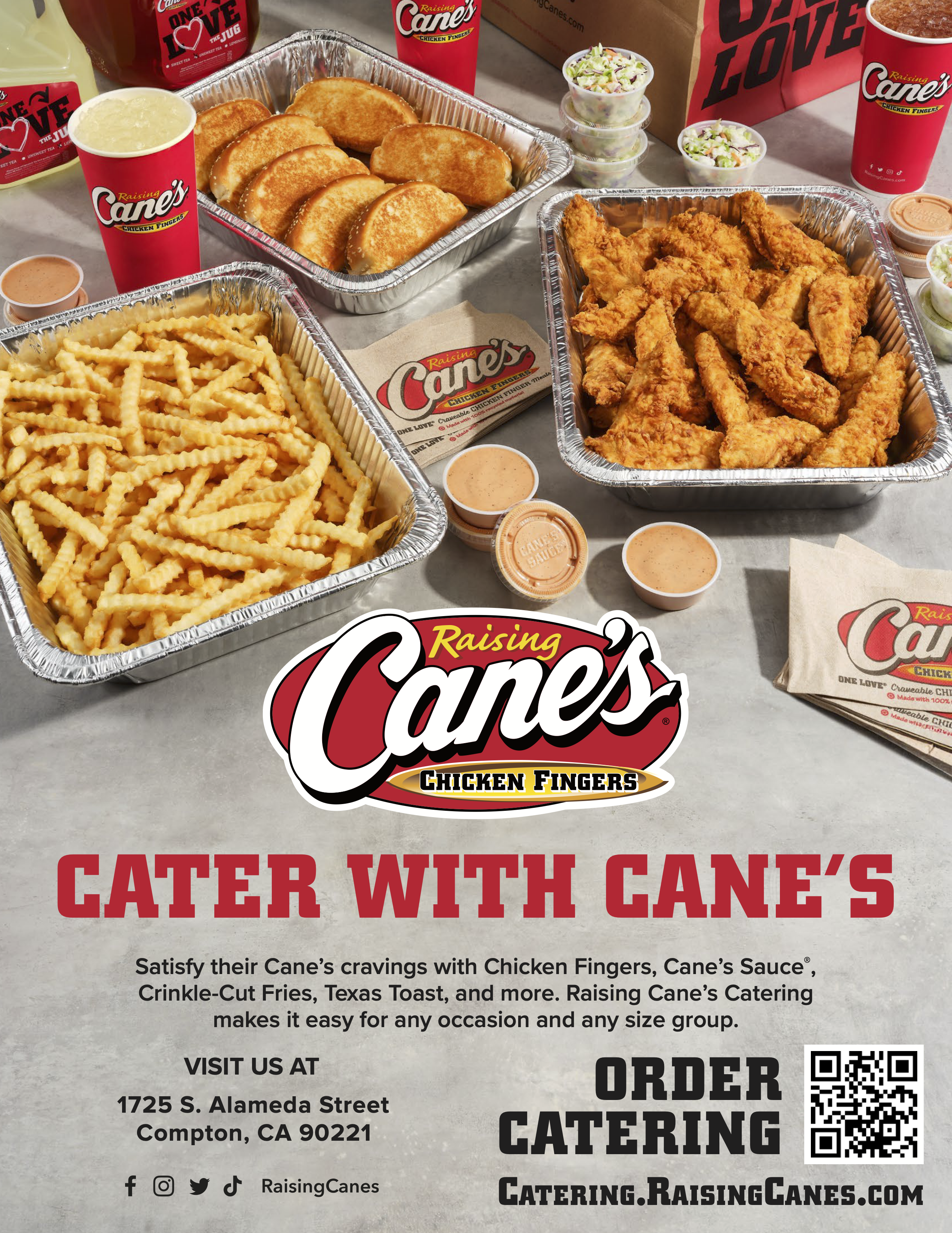Raising Cane’s Chicken FingersRaising Cane’s Catering brings the crowd-pleasers: hot, crispy chicken fingers, crinkle-cut fries, buttery Texas toast, and that legendary Cane’s Sauce - all ready to share. Perfect for meetings, parties, or any get-together, it’s an easy way to feed a group and guarantee smiles!